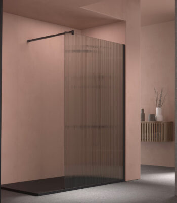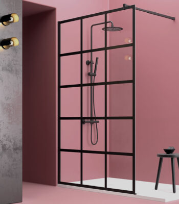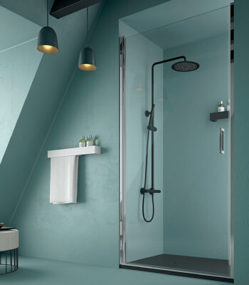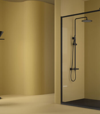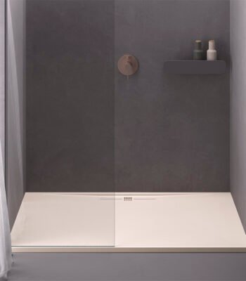 Elige una misma línea estética y gama de color para mamparas, platos y grifería