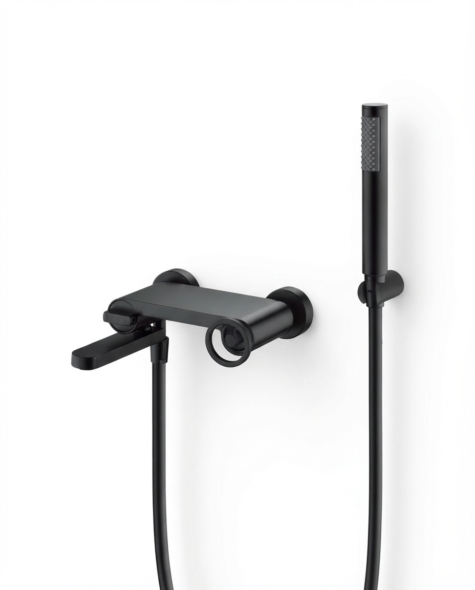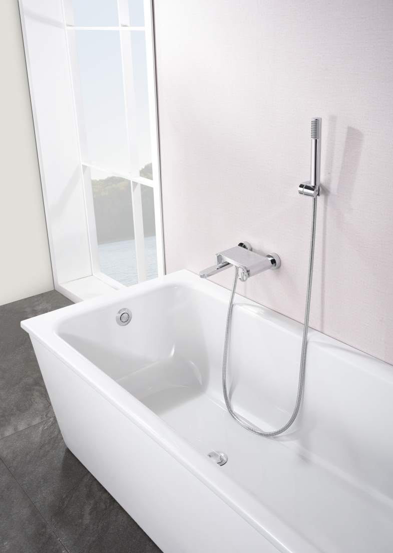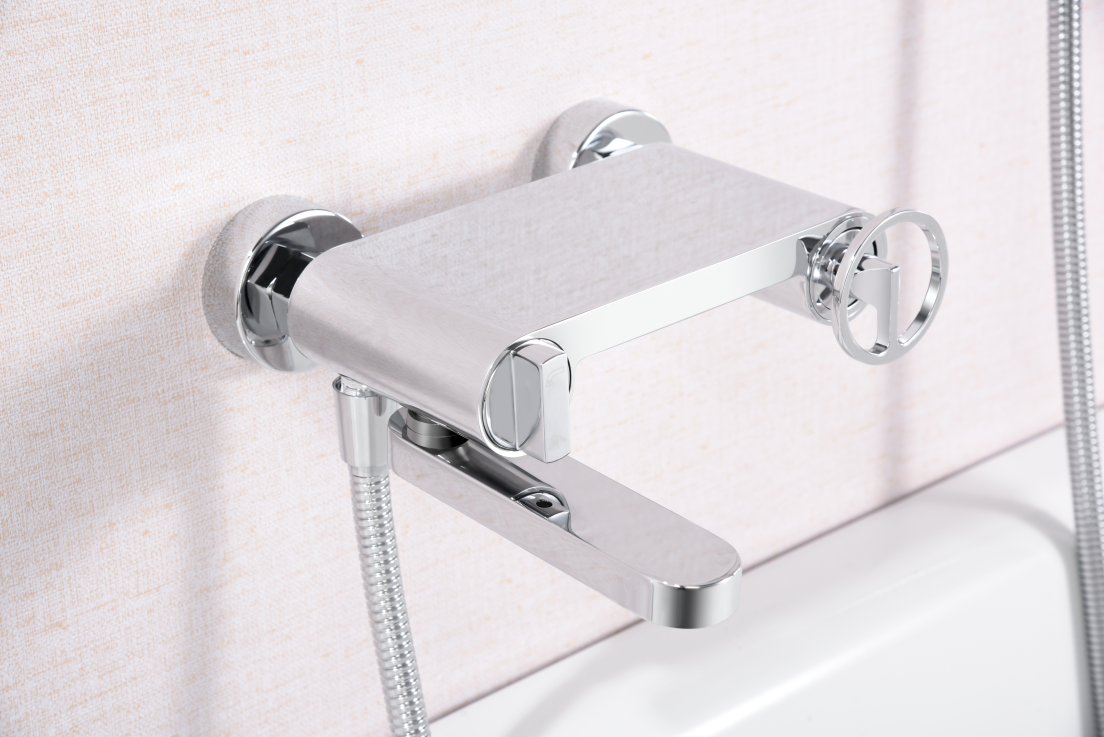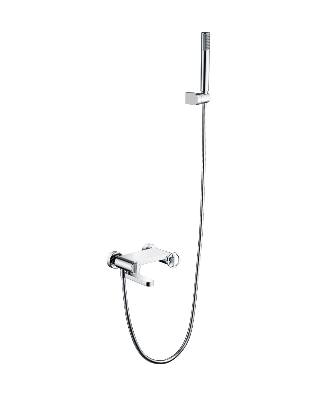 Kit baño/ducha serie OLIMPO, cuerpo de grifería de latón, flexo PVC 180cm, soporte fijo para mango de ducha, mango ducha redondo, cartucho cerámico Ø35mm. Acabado cromo.