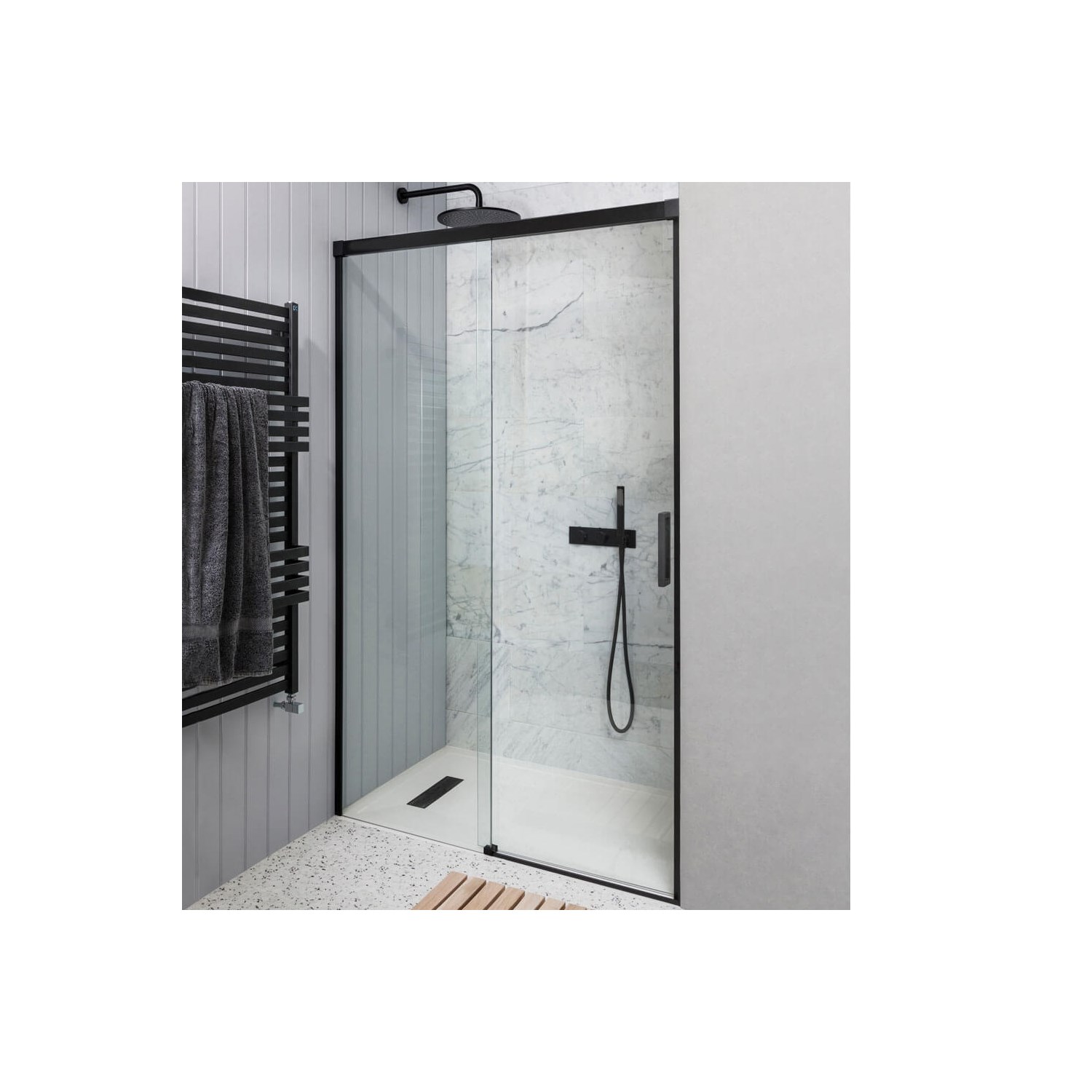 La mampara Cross combina funcionalidad con un alto nivel de estanqueidad gracias a su cierre magnético y diseño optimizado.