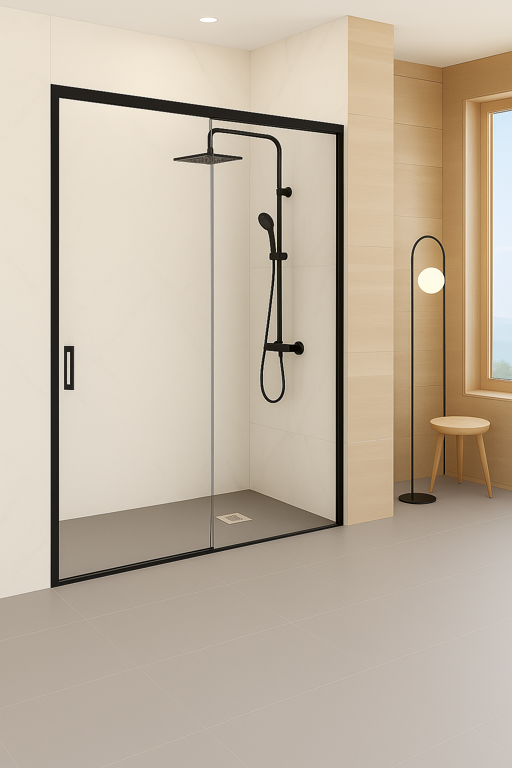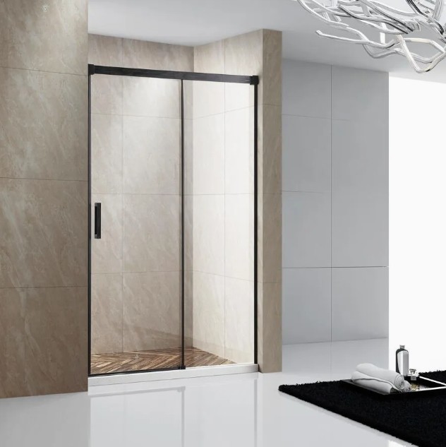 Con una estructura de dos hojas (una fija y una corredera), esta mampara ofrece un diseño minimalista y contemporáneo, sin perfilería inferior, lo que facilita la limpieza y aporta una estética limpia y moderna.