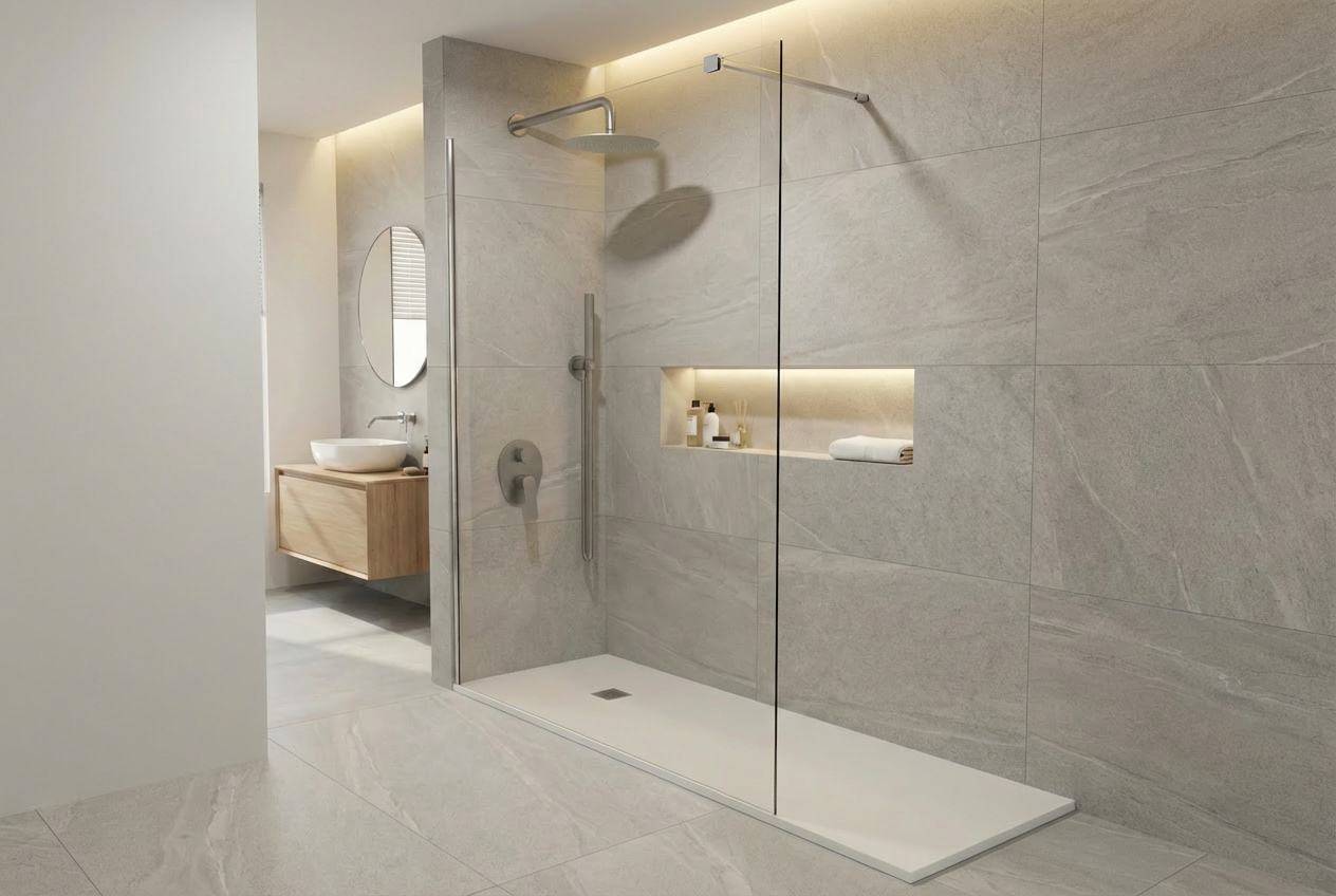 - Diseño moderno y visualmente ligero: su estilo abierto y casi sin perfilería da sensación de amplitud, ideal para baños pequeños o con poca luz.
