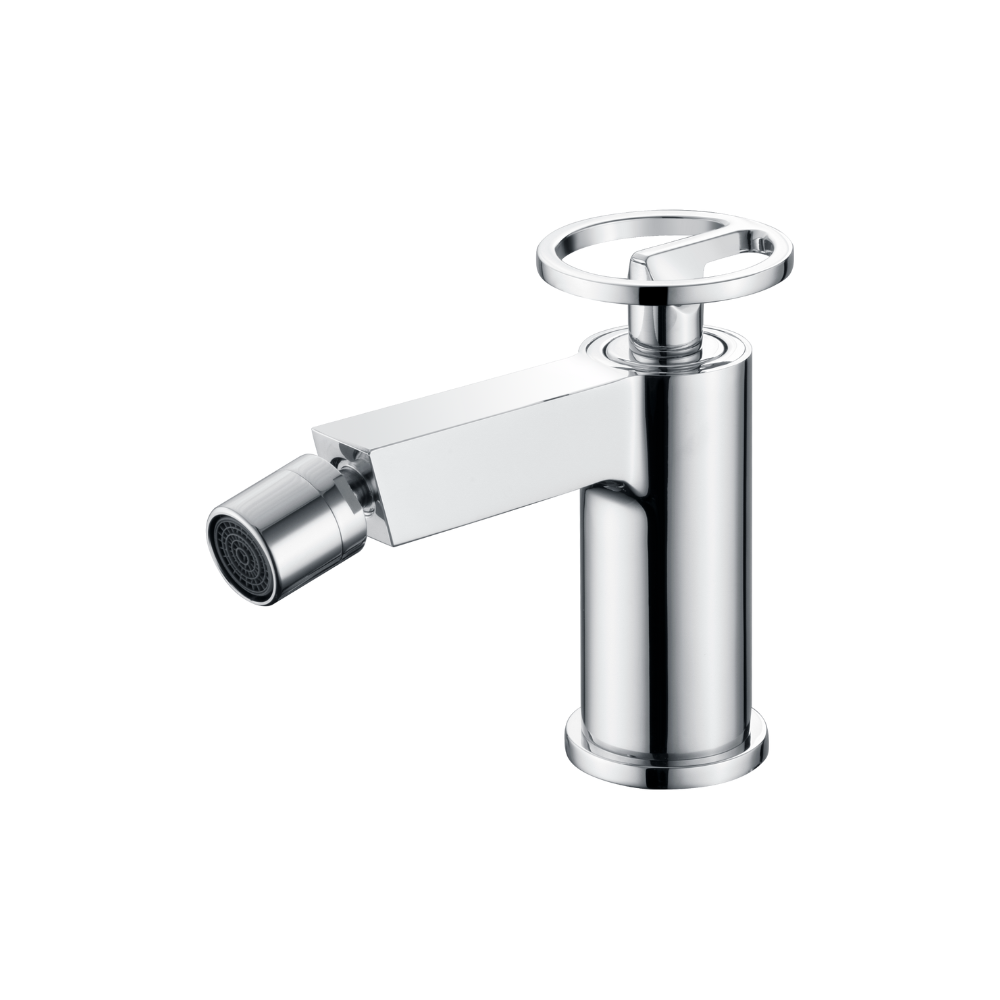 Monomando bidé serie ROMA. Cuerpo grifería en latón. Cartucho cerámico de Ø28mm. Latiguillos 3/8″. Acabado cromo.