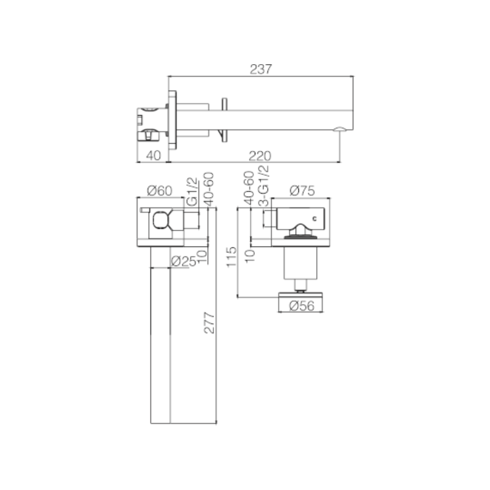 Monomando lavabo empotrado mod. OLIMPO, cuerpo de grifería en dos partes independientes, exterior en latón. Acabado cromo.
