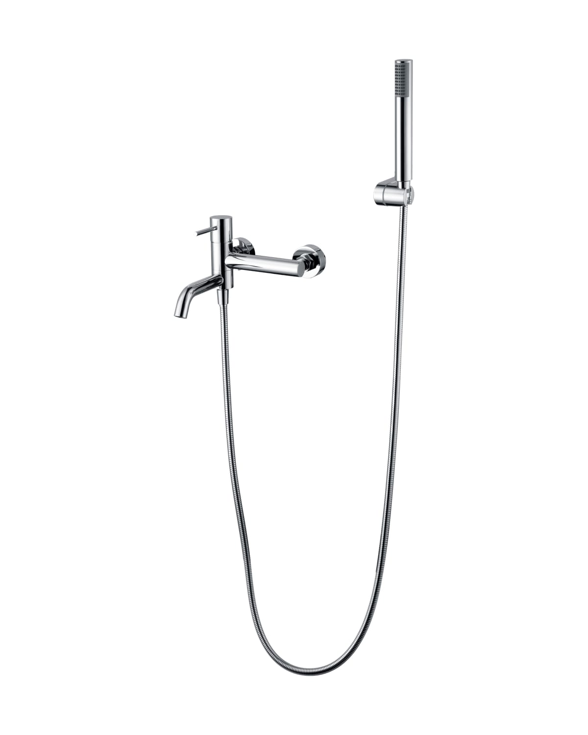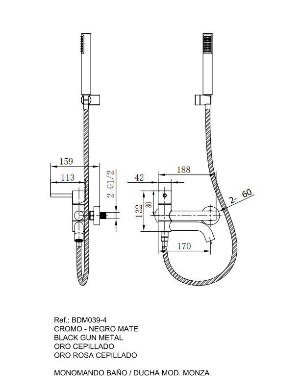 Kit baño/ducha serie MONZA, cuerpo de grifería de latón, flexo PVC 180cm, soporte para mango de ducha ABS, mango ducha redondo, cartucho cerámico Ø35mm. Acabado cromo.