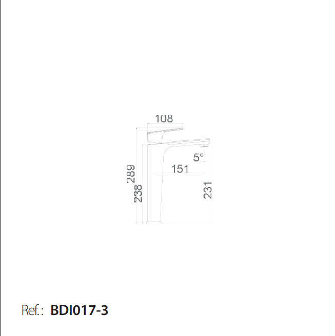 Monomando lavabo alto serie BALI en acabado cromado, cuerpo de grifería de latón cromado, cartucho cerámico Ø35mm, lavaboincluye latiguillos 3/8″