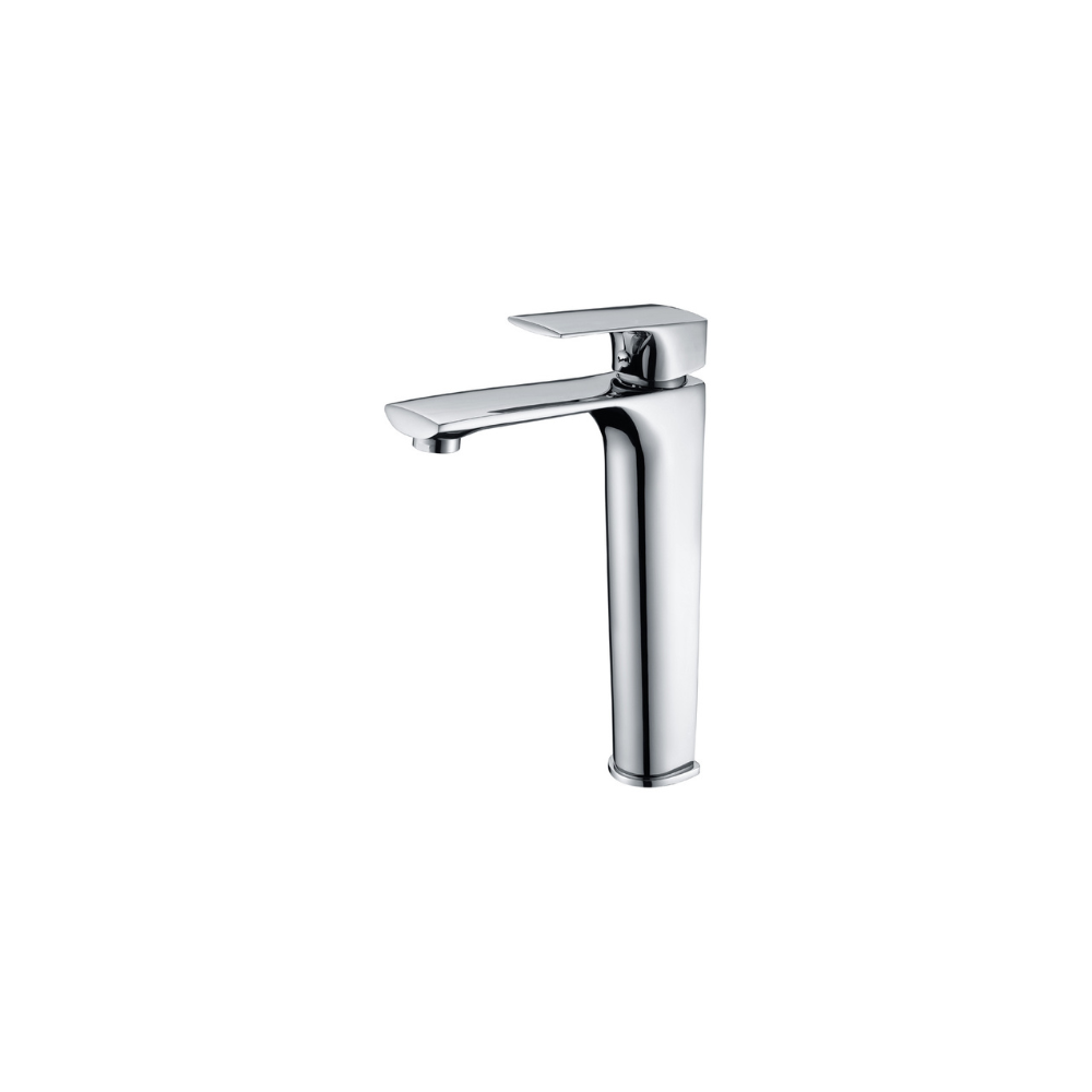 Grifo de lavabo alto serie LINE, cuerpo de grifería hecho de latón, cartucho cerámico de 35mm, incluye latiguillos 38″. Acabado cromo