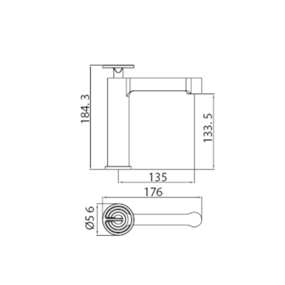 Monomando lavabo serie OLIMPO, cuerpo de grifería de latón, cartucho cerámico Ø26mm, incluye latiguillos 3/8″. Acabado cromo.