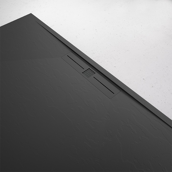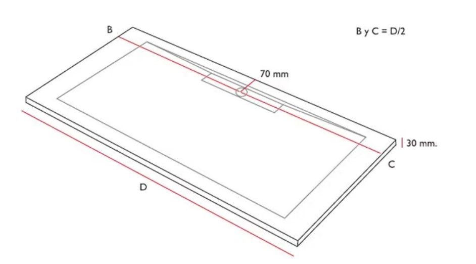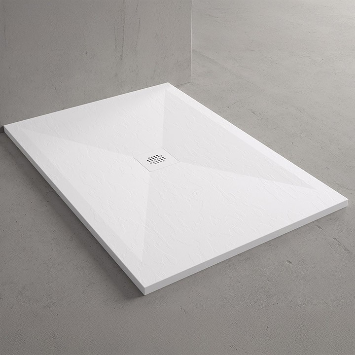 Con un grosor de 3 cm, este plato ofrece un tacto cálido y agradable, aportando confort en cada uso. Su diseño incluye una pendiente centrada hacia la rejilla lateral, optimizando la evacuación del agua.