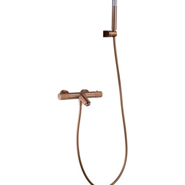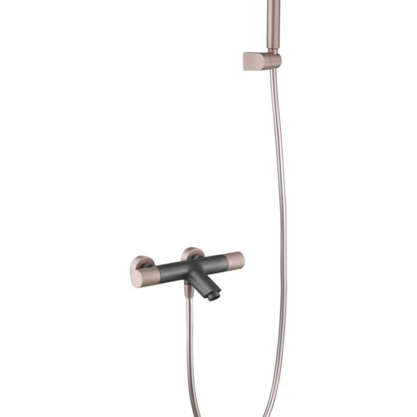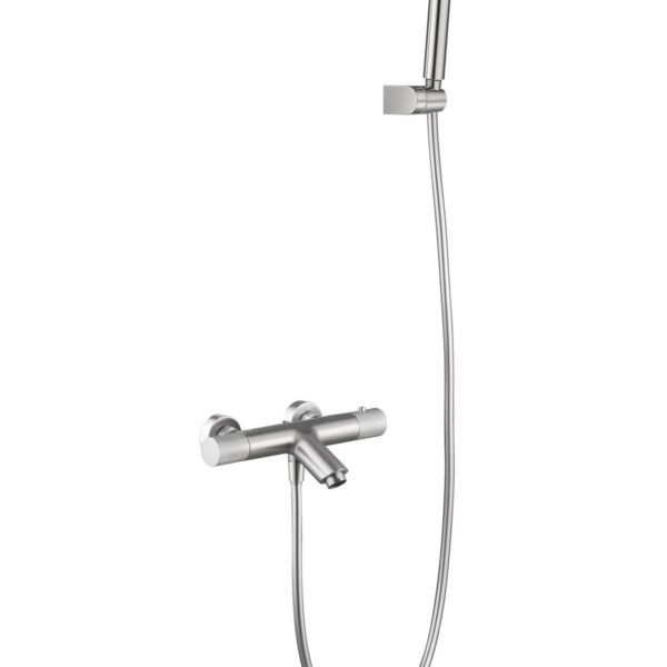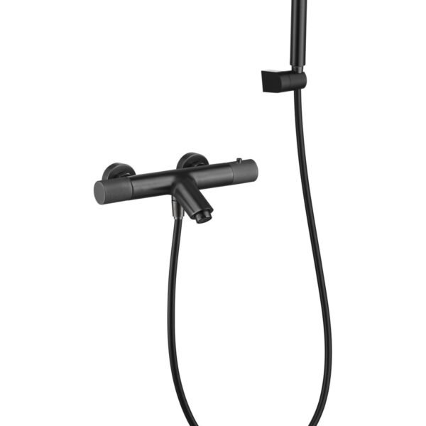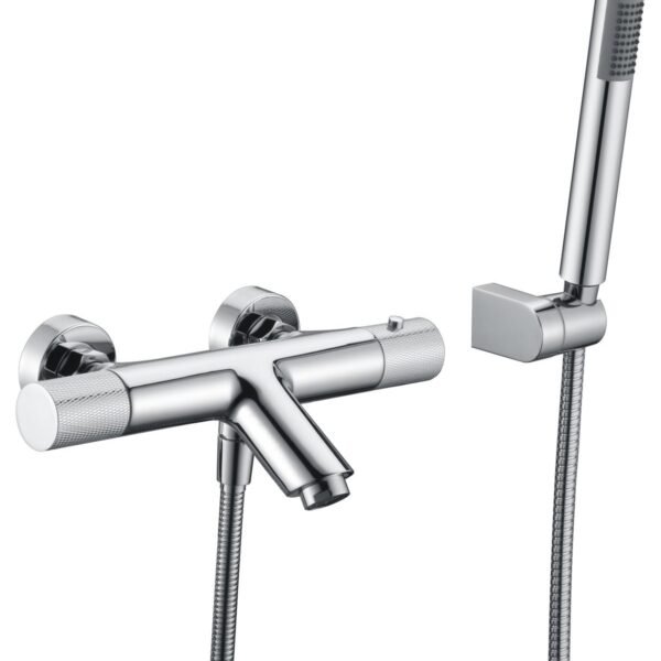 Grifo de baño/ducha serie ART, cuerpo de grifería de latón, flexo metálico 180cm, soporte para mango de ducha ABS, mango ducha cuadrado, cartucho cerámico Ø35mm. Acabado cromo.