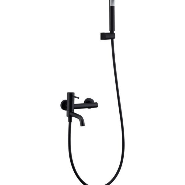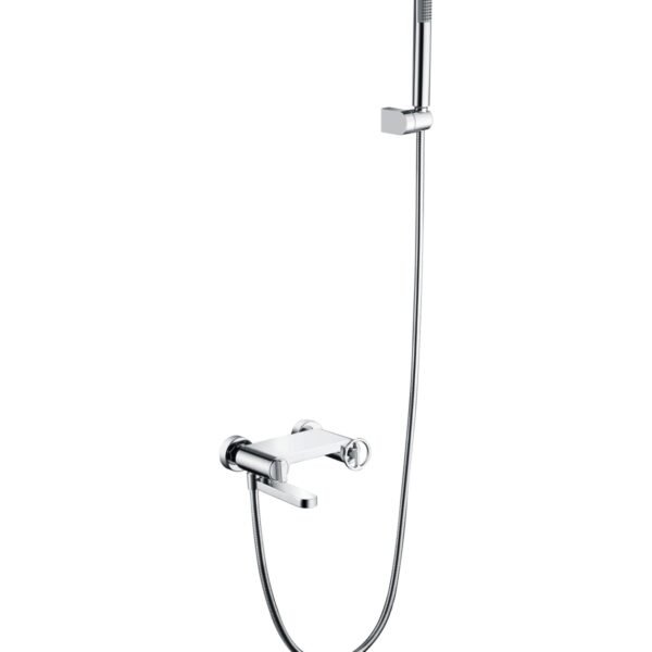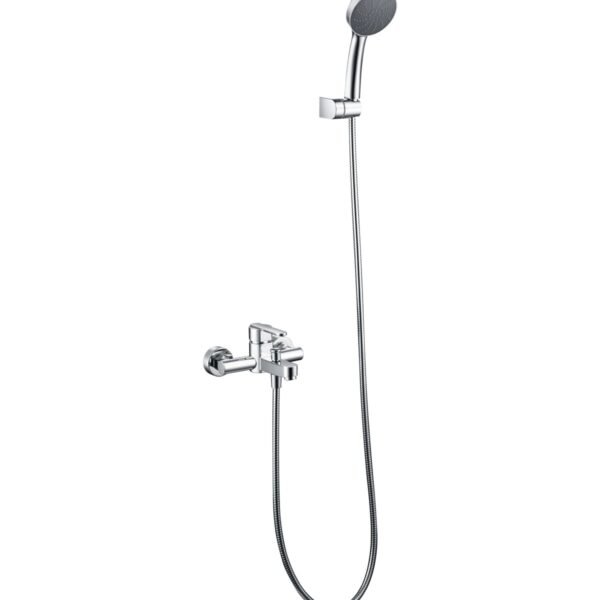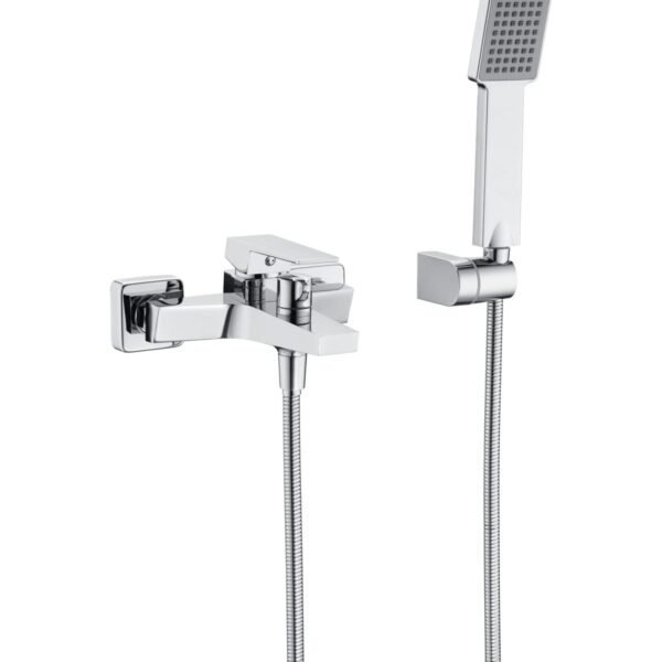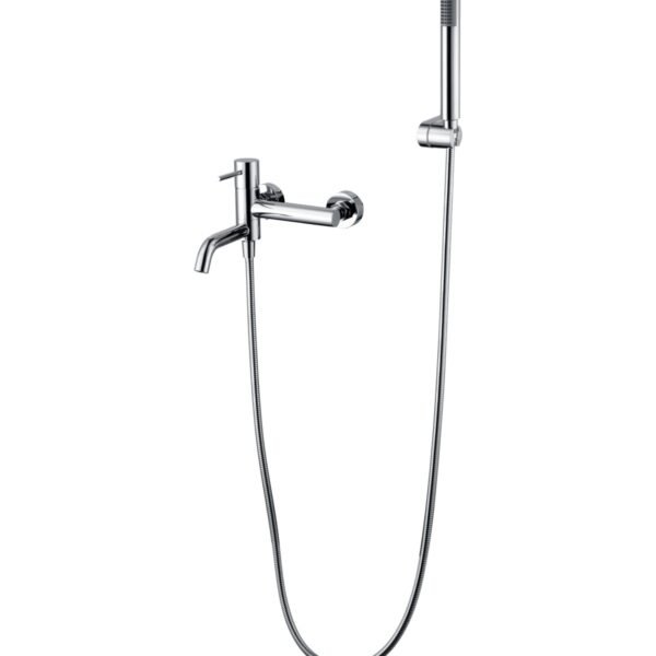Kit baño/ducha serie BALI en acabado cromado, cuerpo de grifería de latón cromado, flexo metálico 180cm, soporte para mango de ducha ABS, mango ducha redondo, cartucho cerámico Ø35mm