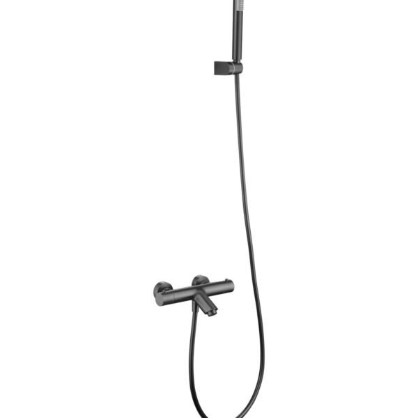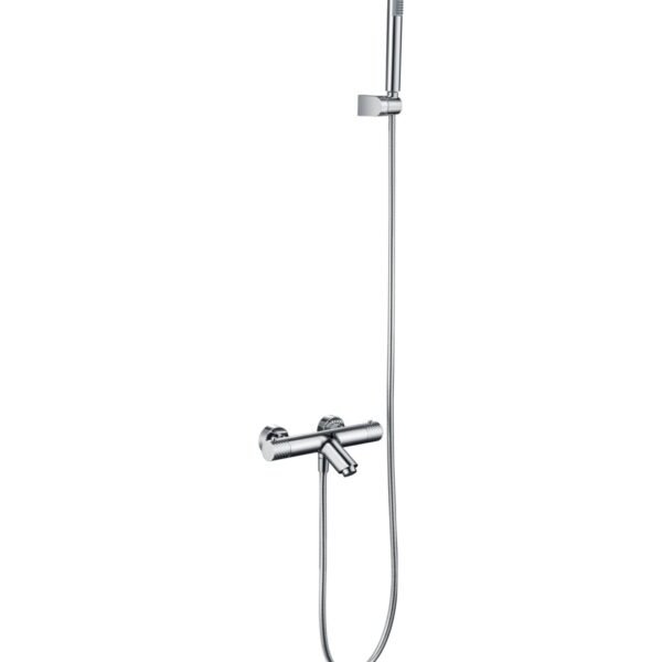 Kit baño/ducha serie PISA, cuerpo de grifería de latón, flexo metálico 180cm, soporte para mango de ducha ABS, mango ducha cuadrado, cartucho cerámico Ø35mm. Acabado cromo.