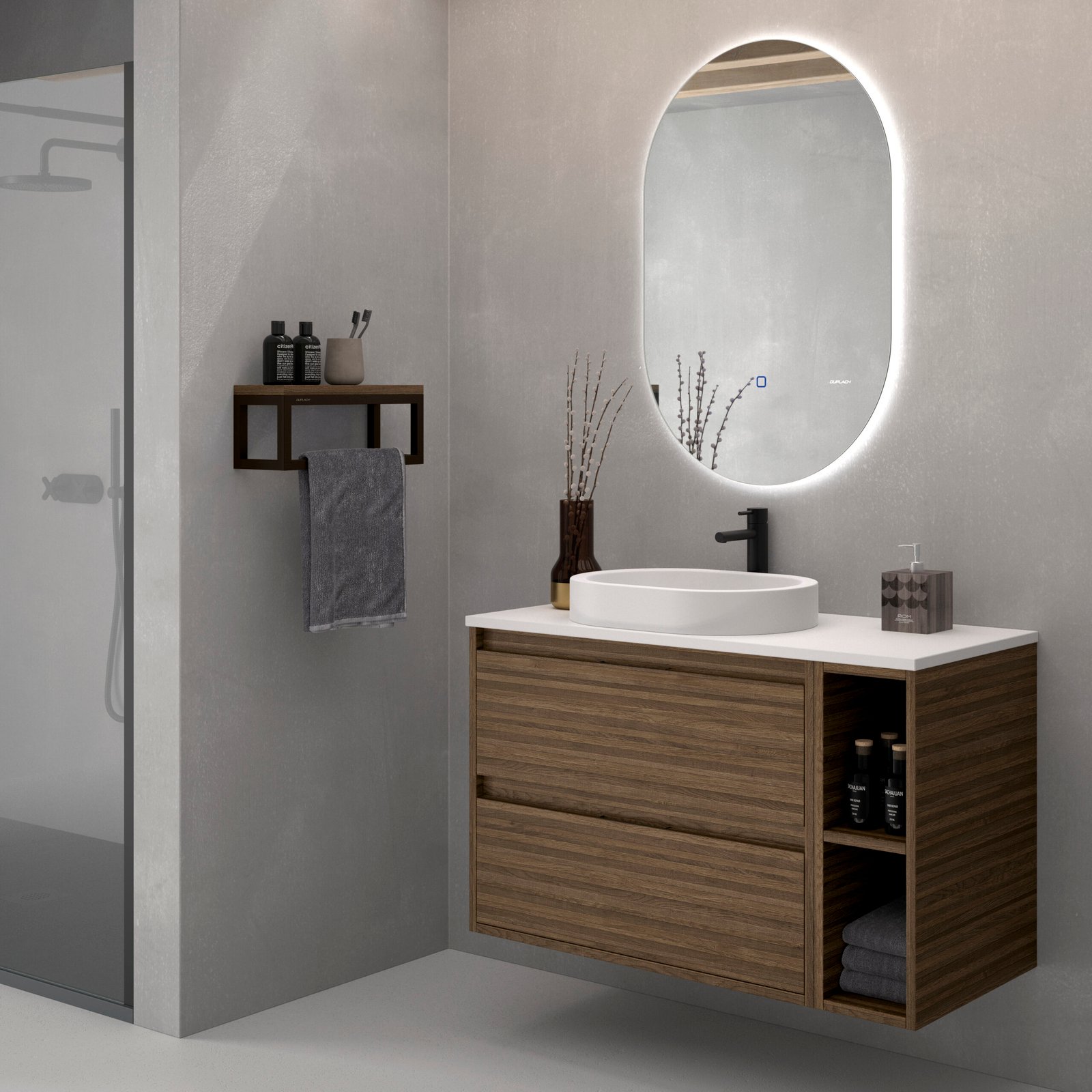 - Espejos: Opción de completar el conjunto con espejo liso o retroiluminado.